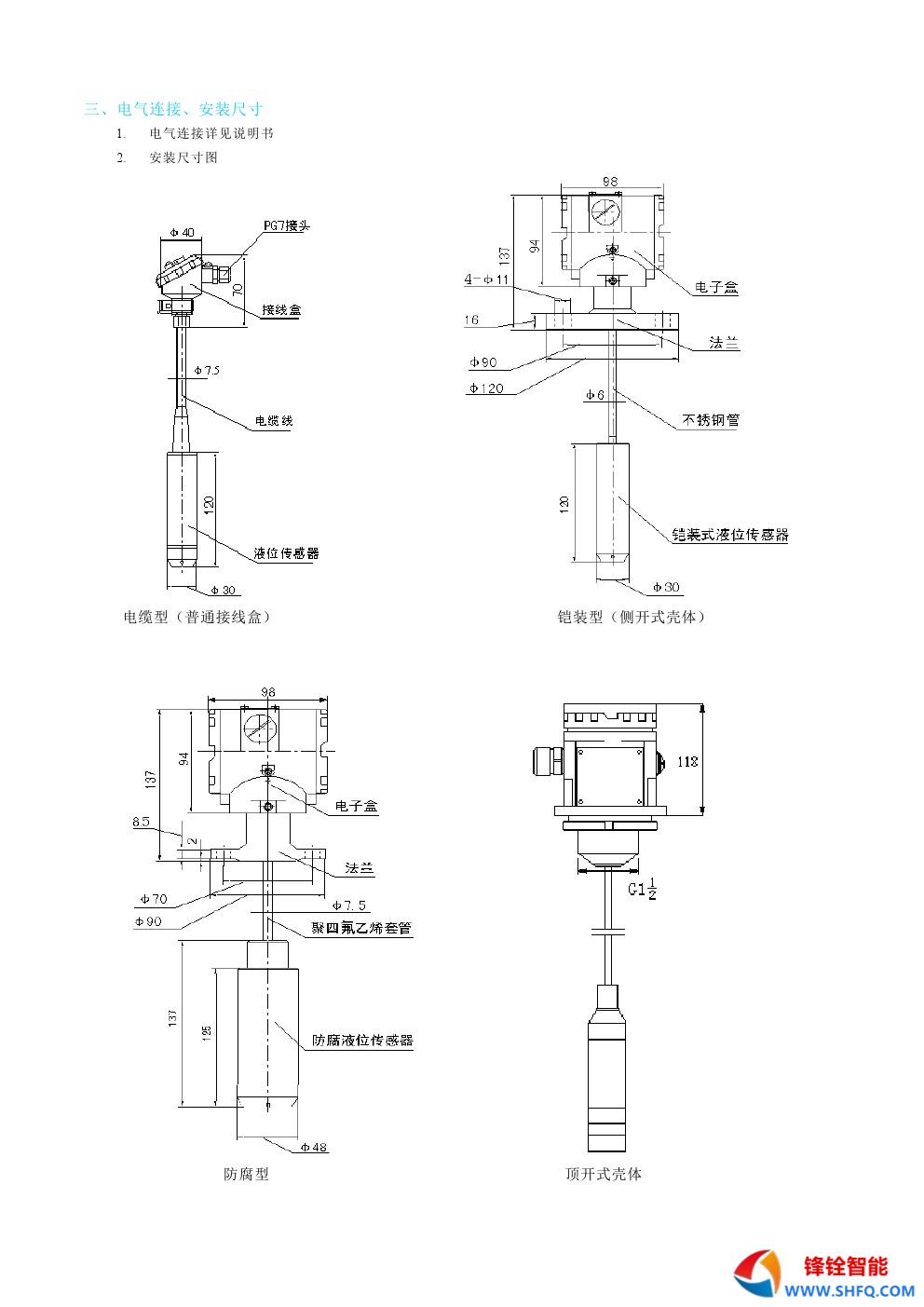 * 安裝形式:普通接線盒建議裝置(僅一體式);法蘭安裝(法蘭規(guī)格參見公司網(wǎng)站相關(guān)介紹);螺紋安裝。