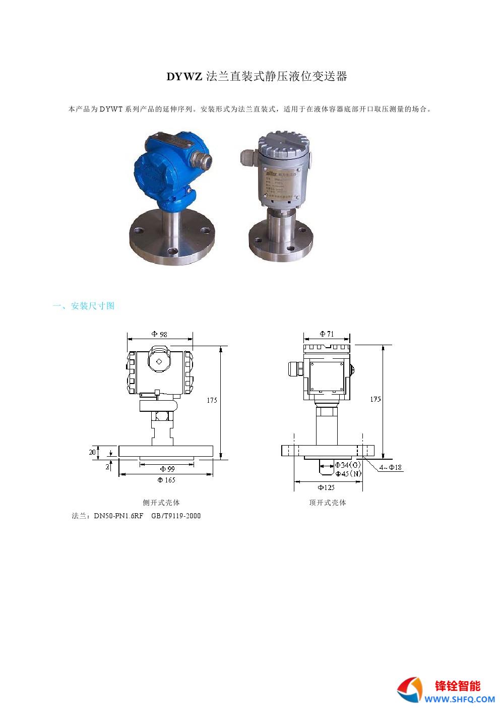 首頁 > 壓力儀表 > 壓力變送器 > 東輝儀表DYWZ法蘭直裝式靜壓液位變送器DYWZ601、DYWZ603、DYWZ610、DYWZ620、DYWZ670