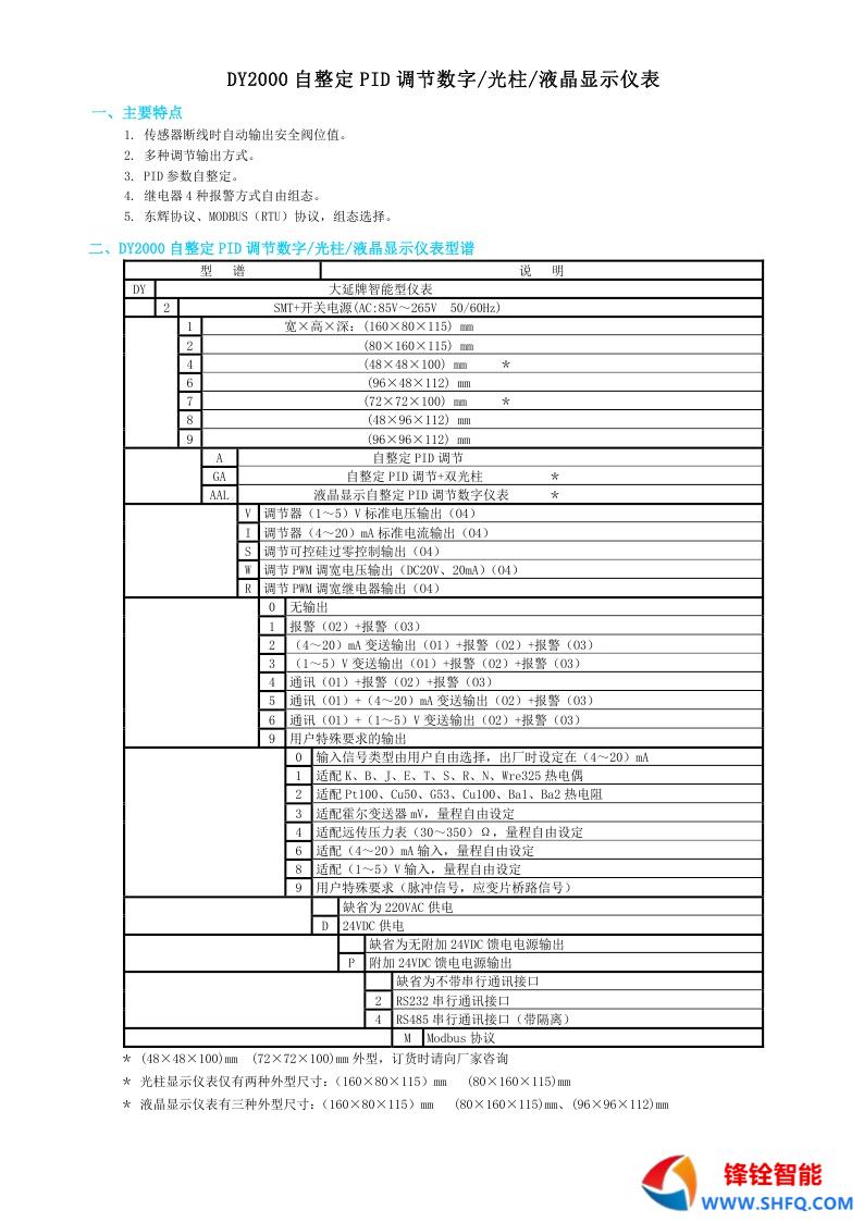 二、DY2000自整定PID調節(jié)數(shù)字/光柱顯示儀表型譜