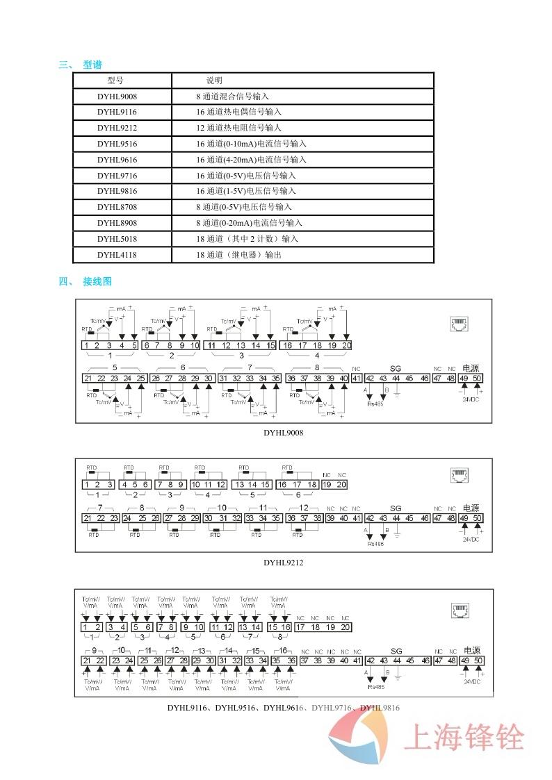 1. 接收 8 通道電壓,電偶,熱電阻,電流,毫伏、電阻遠(yuǎn)傳壓力等混合信號(hào)。