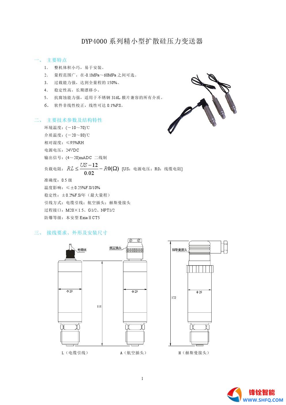 ● DYP2000系列擴散硅壓力變送器 (-0.1MPa~0~0.01MPa……40MPa)