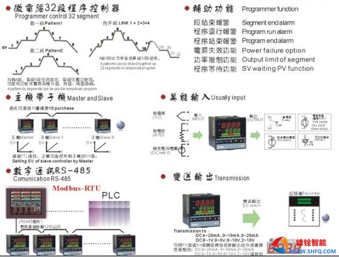 熱器電流顯示、檢知、及保護(hù) 再傳輸功能: 可將PV、SV 值,以DC 4~20mA、0~20 mA、0~5V、0~10V、1~5V、 2~10V 信號(hào)方式,
