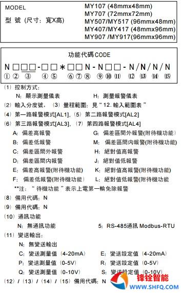 MY 的SV 設定值。(option) 通訊功能: 使用Modbus 通訊協(xié)議,輕易接上各種HMI 人機接口及PLC。具有RS232 和RS485 通訊功能